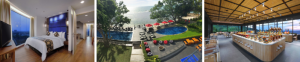 Kiri ke kanan: Kamar President Suite di The Alana Sentul, kolam renang di Aston Anyer, Altius Restaurant di Grand Aston Puncak (foto : ist)