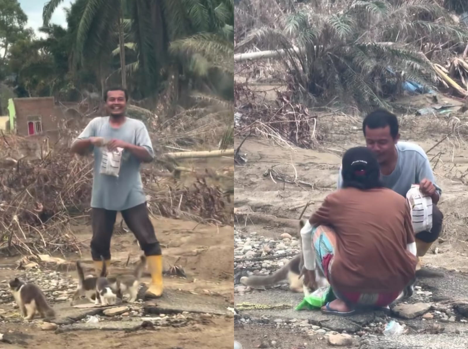 Di Tengah Kondisi yang Porak-poranda, Momen Warga Aceh Tamiang Beri Makan Kucing Curi Perhatian Netizen