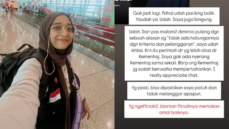 “Udah dari pas malam-malam diminta pulang dengan sebuah alasan yang ‘tidak ada hubungannya dengan kriteria dan pelanggaran,’ saya udah ikhlas karena itu perintah dari yang lebih atas dari Kemenhaj,” imbuhnya.