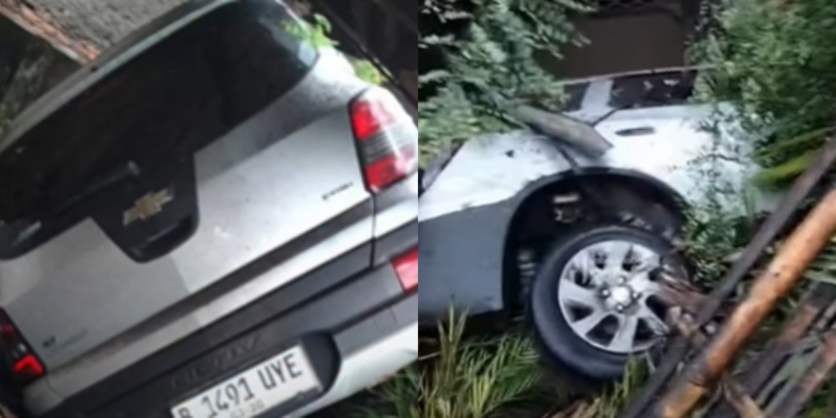 “Ini ada mobil nyungkep, kejadian di dekat rumah Ibu Ida (tetangga), rumah yang dulu,” tutur pengunggah video.
