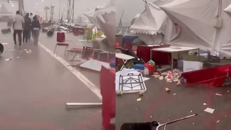 Tenda bazar festival di Gading Serpong roboh karena hujan deras dan angin kencang. (TikTok/gadingserpongupdate)